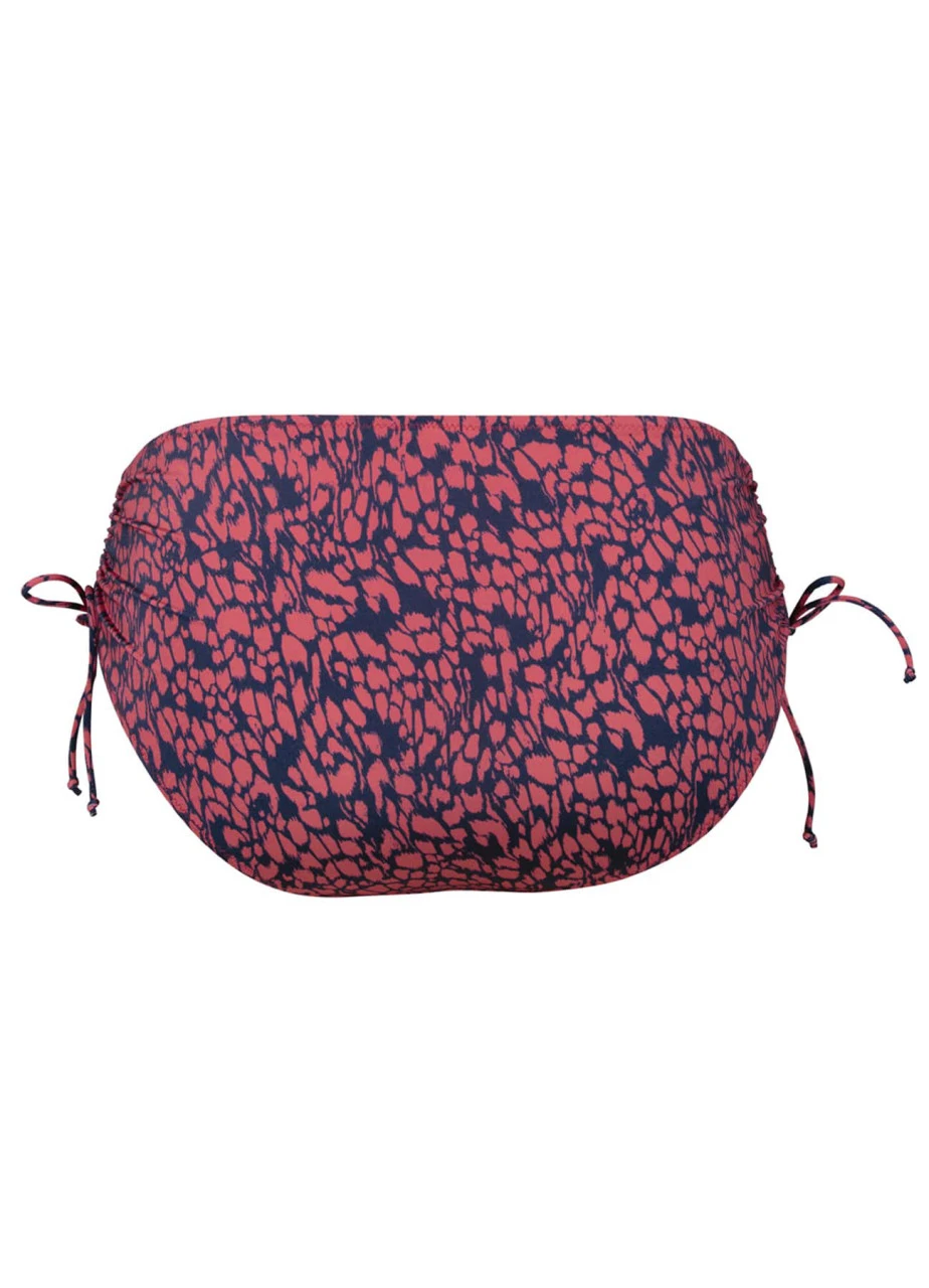 „Marble Art“ ist ein hübsches Bikini-Höschen in einem verspielten Marmormuster in Rosenholz und Blau, welches dezent an Animalprint erinnert. Die Seitenhöhen können Sie beliebig einstellen: Mit den Spaghettibändern kann der Stoff beliebig weit gerafft werden, die Schnüre lassen sich am unteren Ende verknoten oder zu dekorativen Schleifen binden. Die Ränder der Hose sind mittels kleiner Zickzacknähte elastisch versäumt.