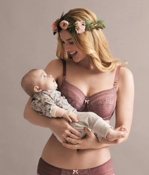 Die Cups des Still-BHs „Fleur“ sind dreigeteilt, rundumlaufende Stillstütze stützt die stillende Brust und verhindert beim Öffnen das Verrutschen des Trägers. Ein Still-BH mit absoluten Vorzügen!