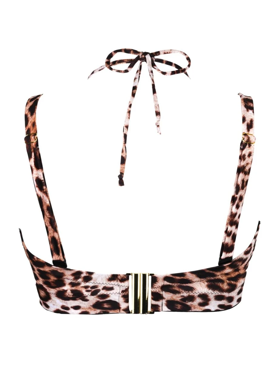 Der Bandeau-Bikini „Leoparda“ ist der perfekte Style für ausgelassene Urlaubstage. Die genähten Cups formen einen runden Busen, Fütterung und Bügel sowie ein starkes Unterbrustband geben Halt, auch in der trägerlosen Variante.