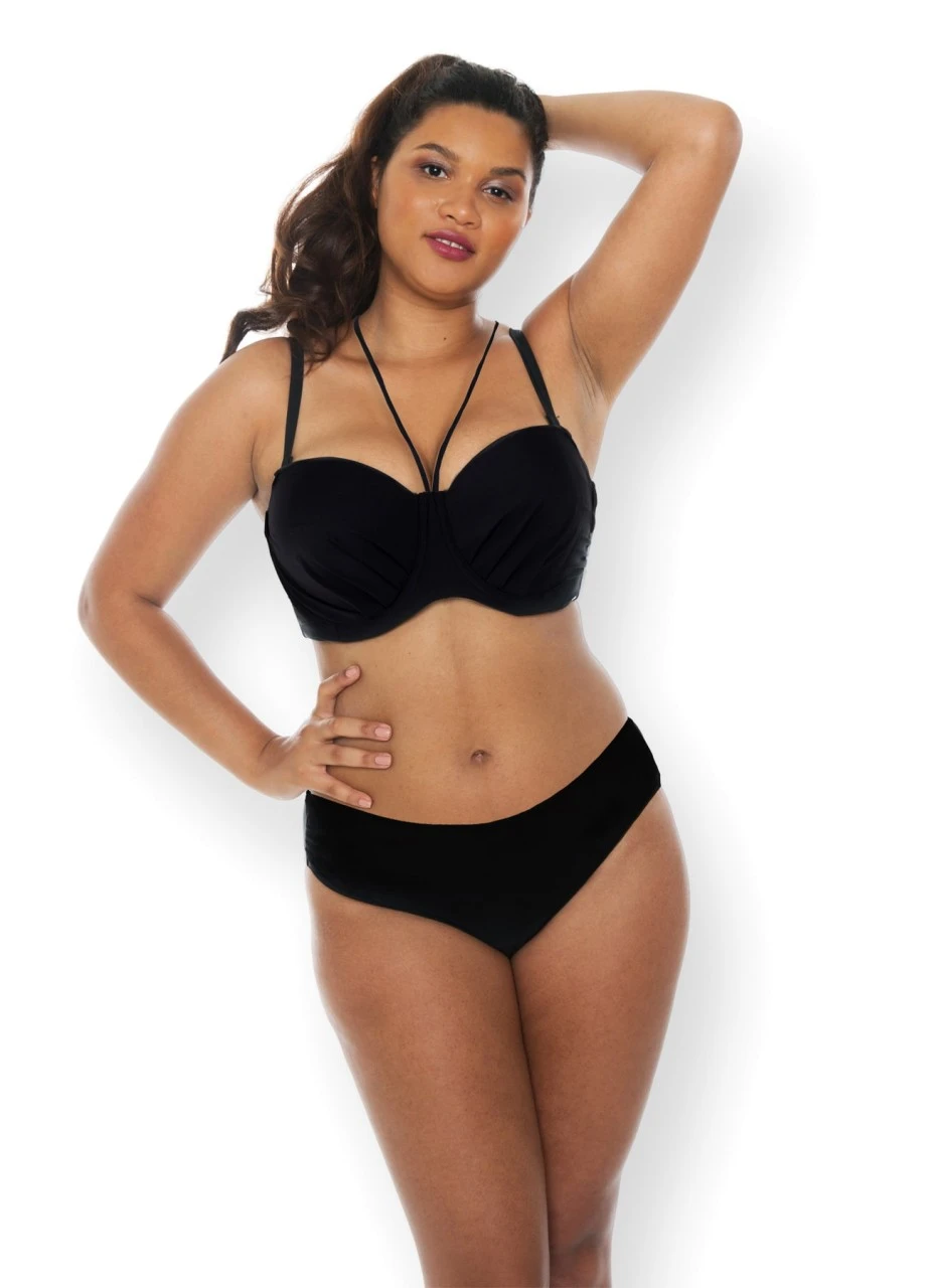 Der Bandeau-Bikini „Swim“ ist der perfekte Style für ausgelassene Urlaubstage. Die genähten Cups formen einen runden Busen, Fütterung und Bügel sowie ein starkes Unterbrustband geben Halt, auch in der trägerlosen Variante.
