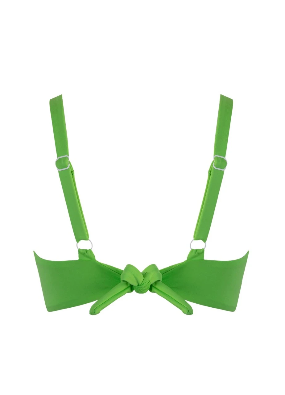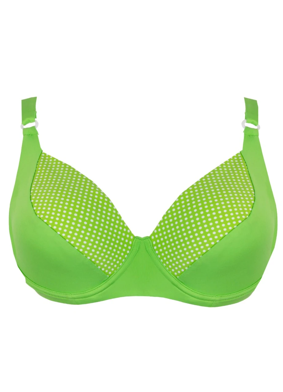 Hello Sunshine! Schicker Bügel-Bikini (gefüttert), im frechen, frischen Grün. Durch den getupften Kontraststoff wirkt er fröhlich und mädchenhaft. Der Bikini ist hinten zum Knoten und hat keinen Verschluss. Passender Slip erhältlich. 2552LW