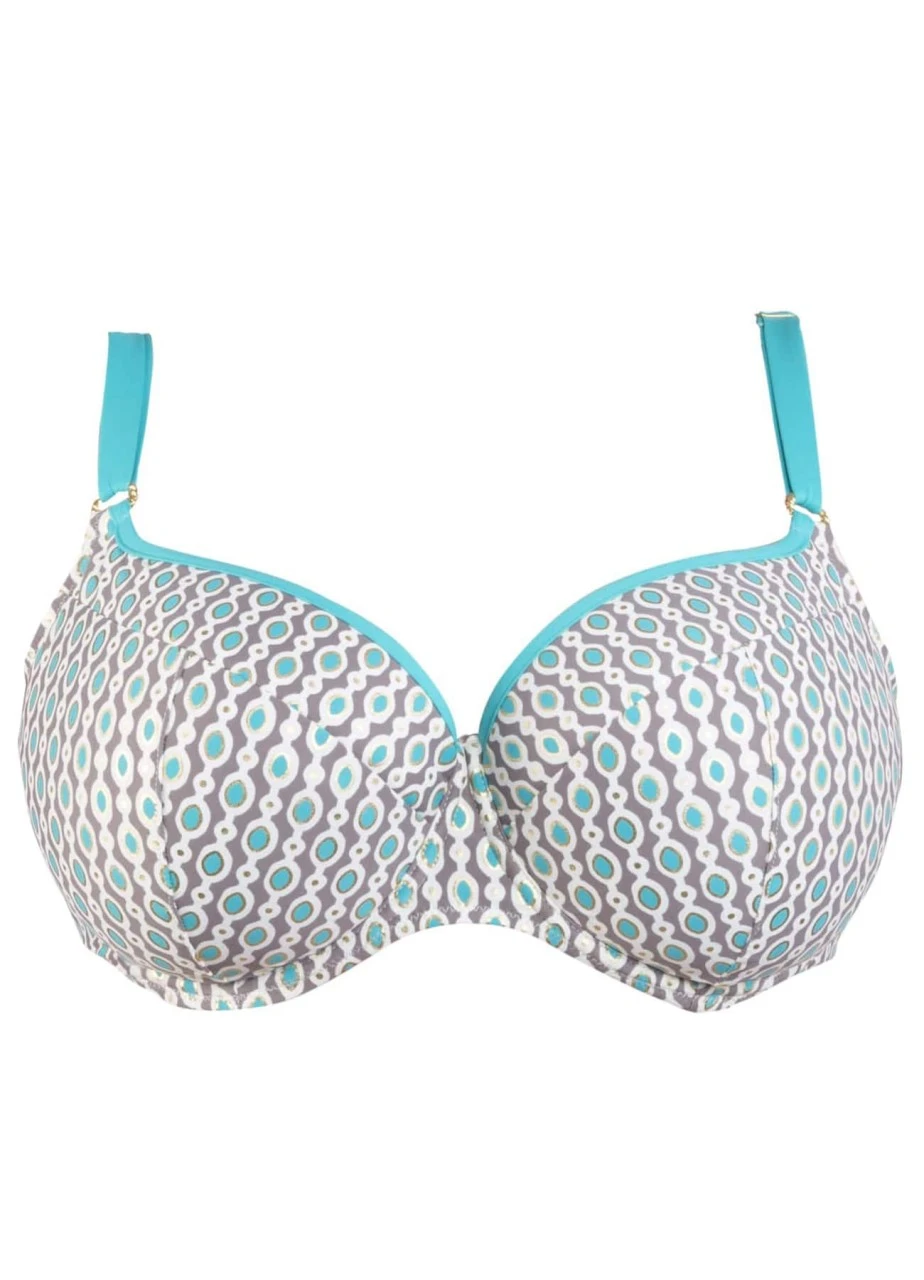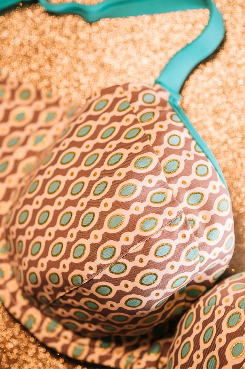 Das Bikini Top mit Softschalen „Marisol“ mit kontrastierendem Futter ist ein Multitalent in Sachen Tragekomfort und begeistert mit schimmernden Goldprint-Elementen. Der moderne Schnitt formt den Busen super rund. 2524TG