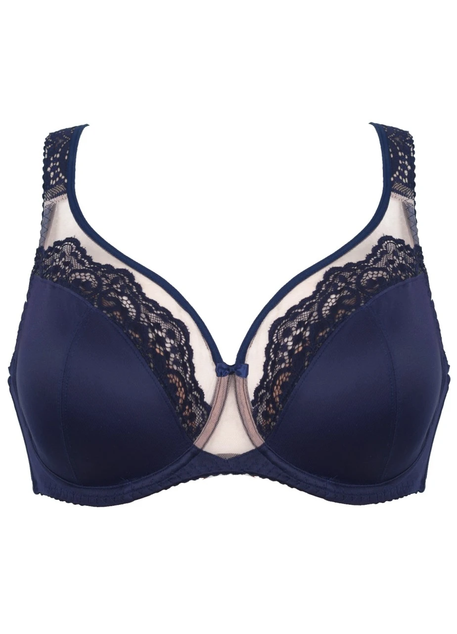 Der Bügel-BH „Luisse“ in Marineblau zeichnet sich durch sein verspieltes Cup mit Spitzenband und hautfärbigem Tülleinsatz im Oberkörbchen aus. Gepolsterte breitere Zierträger sowie kleine Stäbchen im Seitenteil und festes Rückenteil sorgen für besten Halt. Marke: Gorsenia