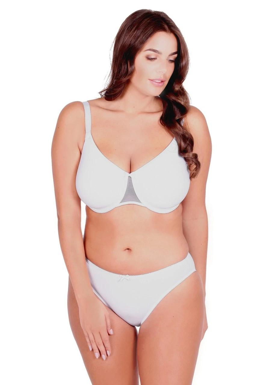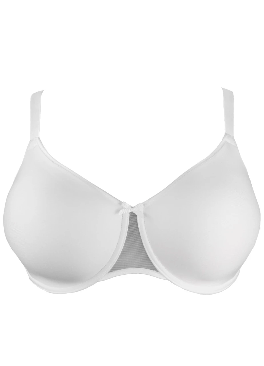 Der Bügel-BH „Miracle Spacer“ in Weiß ist durch die glatte Oberfläche unter jedem Kleidungsstück fast unsichtbar. Bis Cup G erhältlich. Die nahtlos verarbeiteten, vorgeformten Spacer-Cups sind in einem Hitech-Verfahren hergestellt und sorgen so für Atmungsaktivität. Die Double-Face-Ware, bei der die angenehm weiche Seite auf der Haut liegt, transportiert die entstehende Feuchtigkeit über die außen liegende Mikrofaser ab. Dies verspricht ein besonders angenehmes Tragegefühl. Weiche und ergonomisch geformte Komfort-Träger sorgen für sicheren Halt und optimale Entlastung.