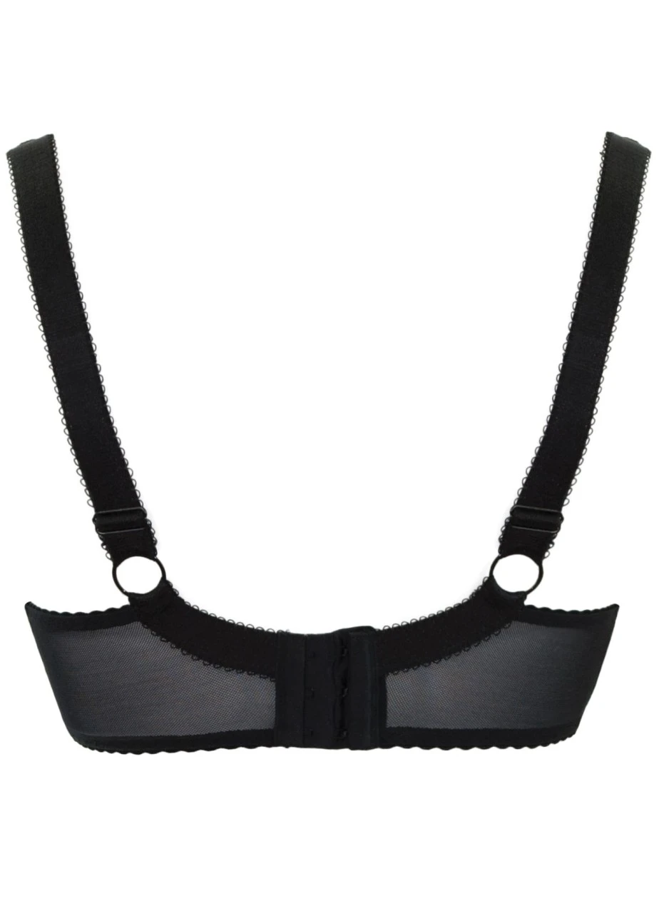 Der schwarze Bügel-BH „Princess Plunge“ mit Beflockung im Tupfenmuster sorgt für optimalen Halt. Die verspielte Spitze am Cup-Rand und das Schleifchen am verzierten Trägeransatz geben dem klassischen „Schwarzen“ einen verführerischen Look. Hinten mit 3-Haken Verschluss, verstellbare elastische Träger. Tipp: Die Cups sind etwas kleiner als Sie es von anderen BH’s gewohnt sind. Wenn Sie zwischen zwei Cup-Größen stehen, wählen Sie bitte stets die größere.