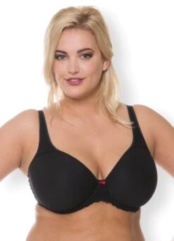 Der Spacer-BH „French Can Can“ in schwarz/rot ist durch seine glatte Oberfläche unter jedem Kleidungsstück fast unsichtbar. Die nahtlos verarbeiteten, vorgeformten Spacer-Cups sind in einem Hitech-Verfahren hergestellt und sorgen so für Atmungsaktivität. Die Double-Face-Ware, bei der die angenehm weiche Seite auf der Haut liegt, transportiert die entstehende Feuchtigkeit über die außen liegende Mikrofaser ab. Dies verspricht ein besonders angenehmes Tragegefühl. Sein dunkles Schwarz der Vorderseite, kombiniert mit den schwarz-roten Streifen seiner Rückseite sind ein toller Hingucker!