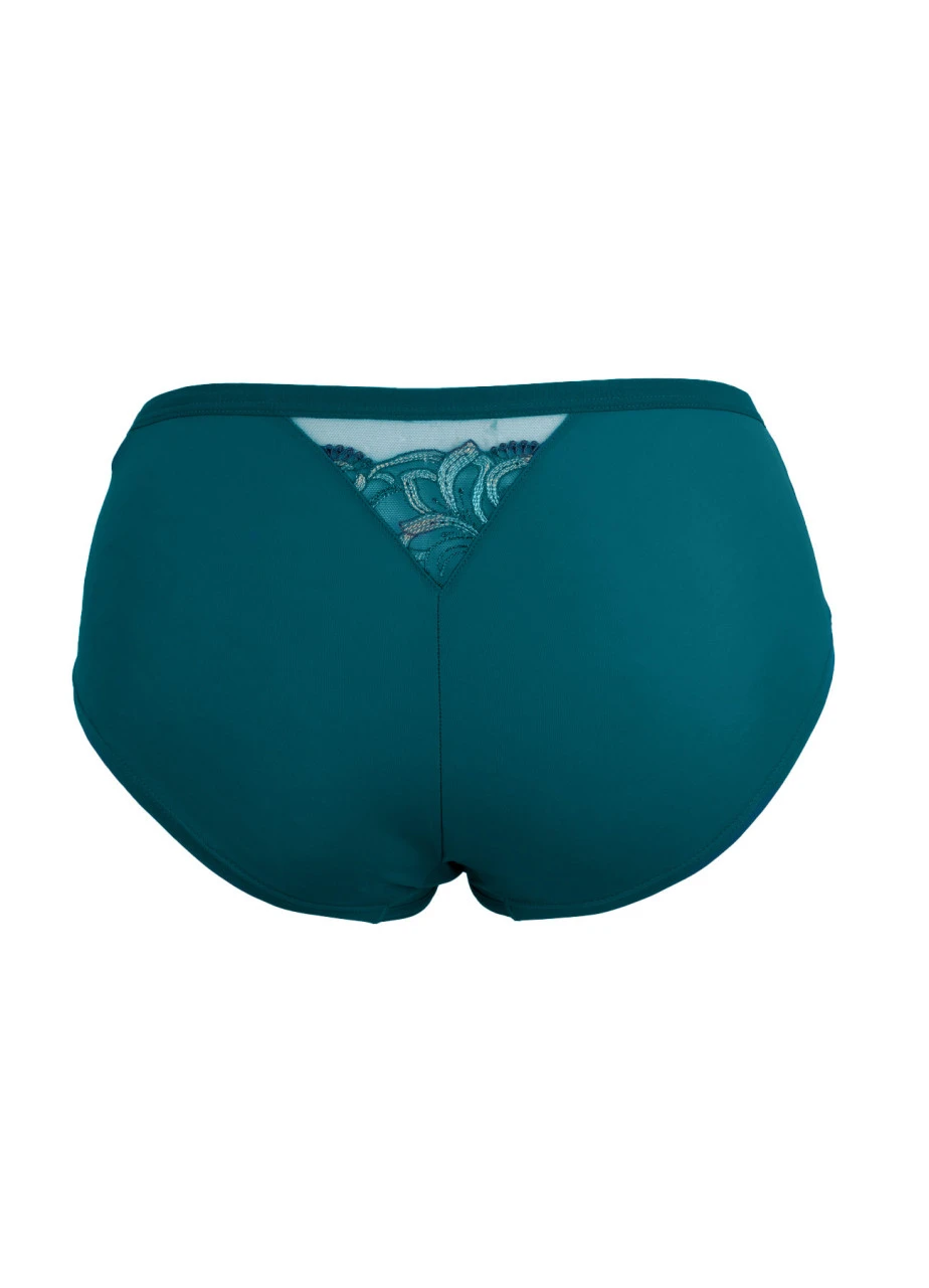 „Molly“ ist ein komfortabler Slip mit höherem Bund in frischem Azurblau – ein klassisches Model perfekt für jeden Tag. Die Stickerei und die floralen Akzente sorgen für besonderen Charme. Bestes Tragegefühl bieten der besonders flache Bund- und Beinabschluss und die verarbeitete weiche Mikrofaser. Im Poteil sorgt ein transparenter Einsatz für einen attraktiven Hingucker.