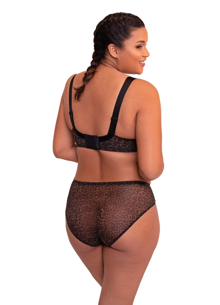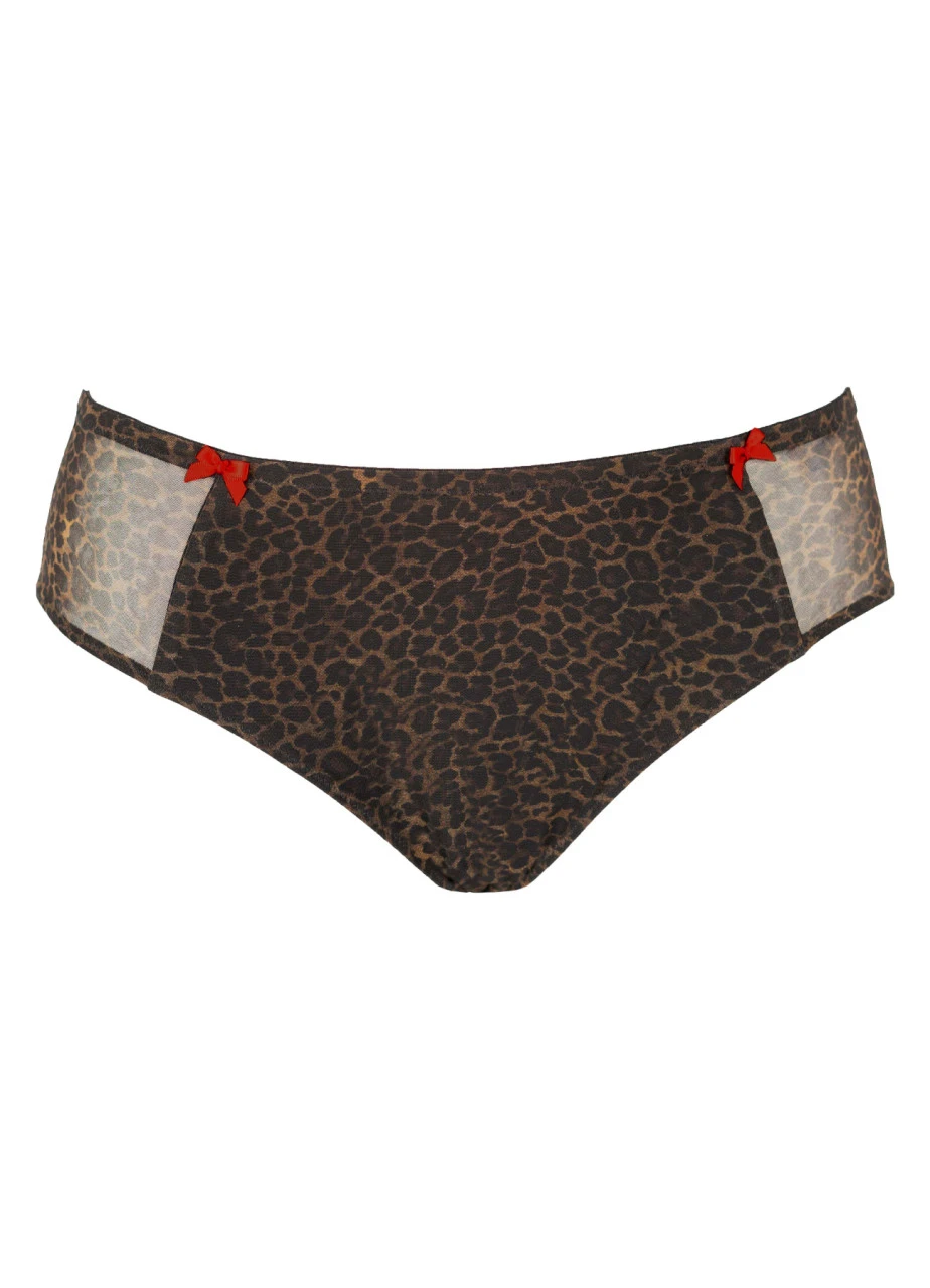 Animalprint – be wild! Hochwertiger italienischer Powermesh in trendigem Leo-Print und zwei hübsche rote Ziermaschen machen den Slip „Wild“ zum echten Schmuckstück. Sein Vorderteil ist mit 100% Baumwolle unterfüttert, der Poteil ist leicht transparent. Made in Europe.