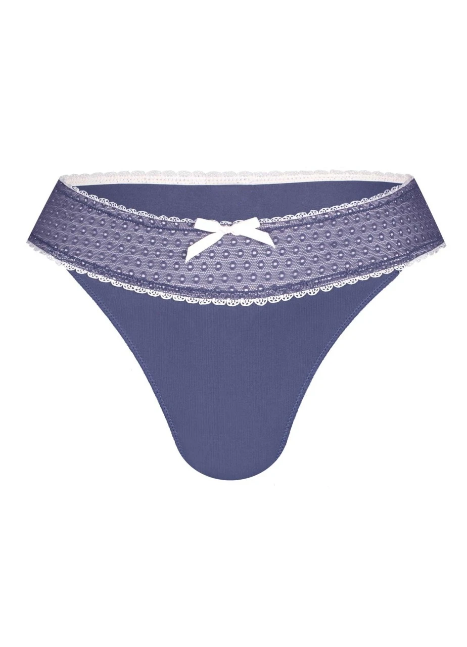 Modischer String aus weicher Microfaser im trendy gepunktetem Tüll. Die Schnittform mit Layering im Vorderteil unterstreicht den modernen Look. Die tolle Optik wird durch das dezente Dekor-Schleifchen am Bund abgerundet.