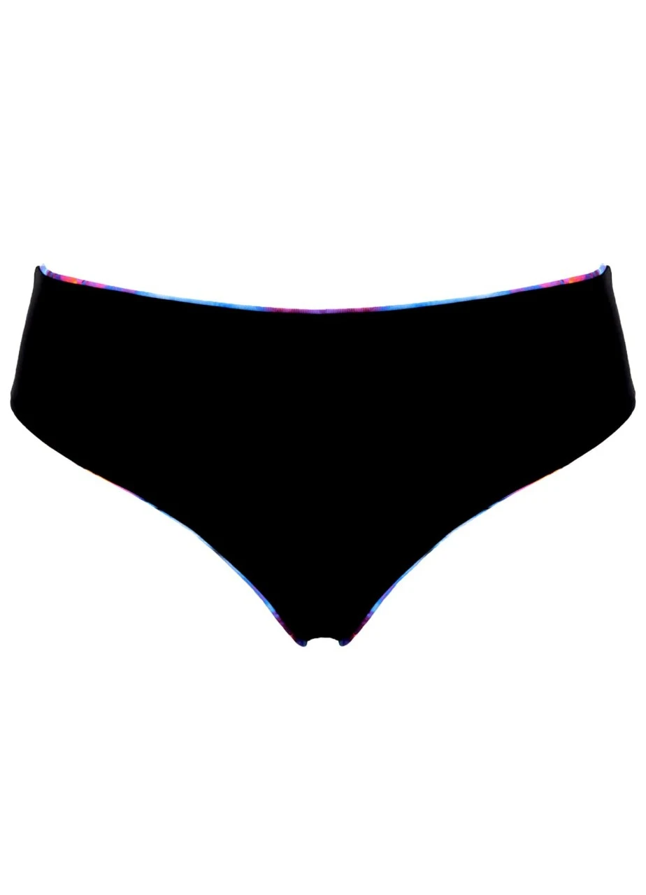 Das Bikini-Höschen des Sets „Holi Festival“ kommt in leuchtenden Farben. Sein Material ist trotz buntem Print sehr elastisch und weich. Ihnen gefällt die auffällige Farbe nur in Maßen? Kein Problem, dieses Höschen können Sie wenden und einfach in schwarz tragen. Übrigens, dieser sportliche Schnitt eignet sich besonders gut für Wassersport.